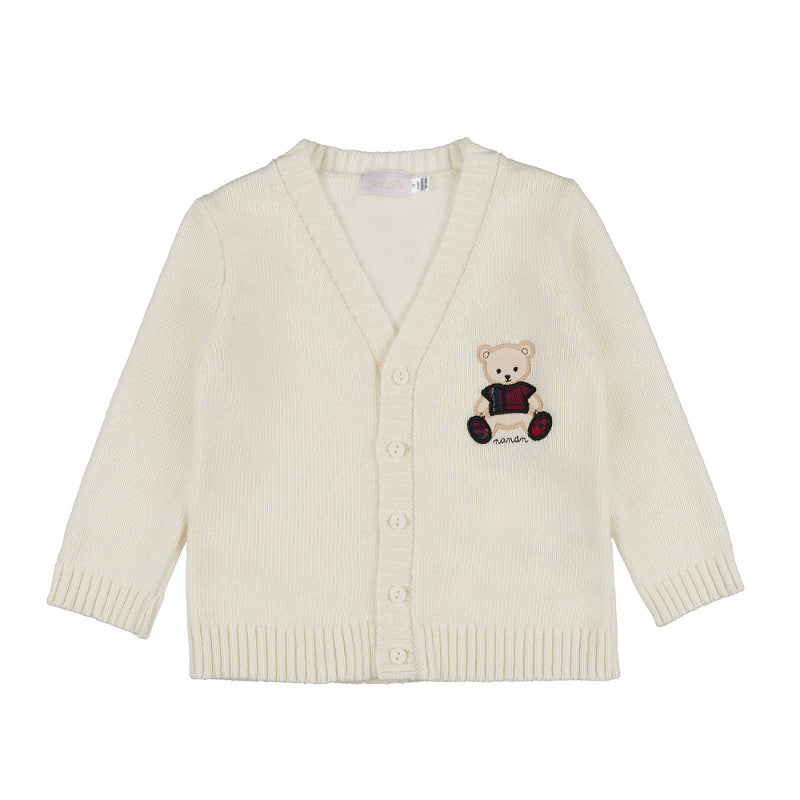 Cardigan bej tricotat din casmir si lana merino cu dungi fine