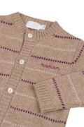 Acest cardigan bej tricotat este realizat dintr-un amestec de casmir, lana merino extrafina, vascoza si poliamida, oferind caldura si confort deosebit. Modelul cu dungi fine adauga un accent modern, iar inchiderea frontala cu nasturi il face usor de purtat si asortat. Perfect pentru tinute elegante de zi sau ocazii speciale in sezonul rece.