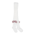 Aceste dresuri albe sunt realizate din material moale si confortabil, perfecte pentru a oferi caldura si eleganta in sezonul rece. Fundita roz aplicata pe lateral adauga un detaliu delicat si rafinat, transformandu-le intr-un accesoriu chic pentru orice tinuta.