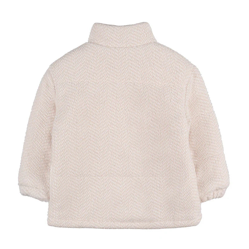 Aceasta geaca crem captusita este ideala pentru zilele reci, oferind caldura si confort fara a restrictiona libertatea de miscare. Realizata din materiale rezistente si placute la atingere, este practica si versatila pentru tinutele de zi cu zi. Inchiderea frontala cu fermoar este conceputa pentru a le oferi celor mici independenta si usurinta la imbracare.