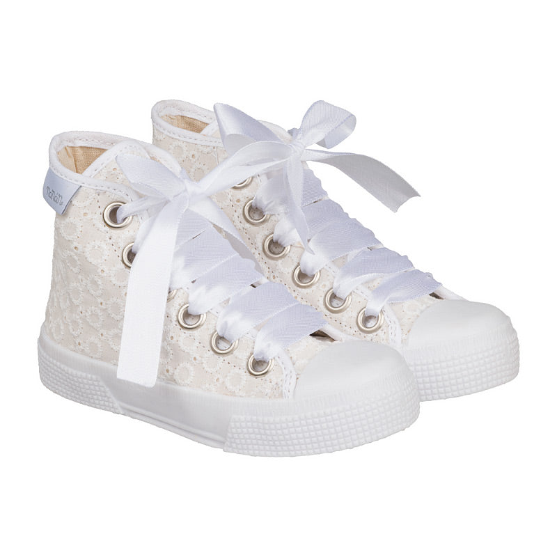 Sneakers inaltati confortabili din broderie anglaise, perfecti pentru a insoti micuta ta in orice ocazie. Acesti sneakers ofera un look elegant si un confort exceptional.
