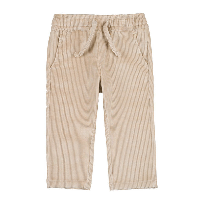 Acesti pantaloni bej din catifea sunt ideali pentru tinutele de zi cu zi, oferind atat confort, cat si eleganta discreta. Realizati dintr-un material moale si placut, au croiala clasica dreapta si talie elastica ajustabila, ceea ce garanteaza o potrivire optima si libertate de miscare. Pantalonii sunt prevazuti cu buzunare laterale practice si pot fi usor asortati atat la camasi, cat si la pulovere sau tricouri.