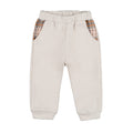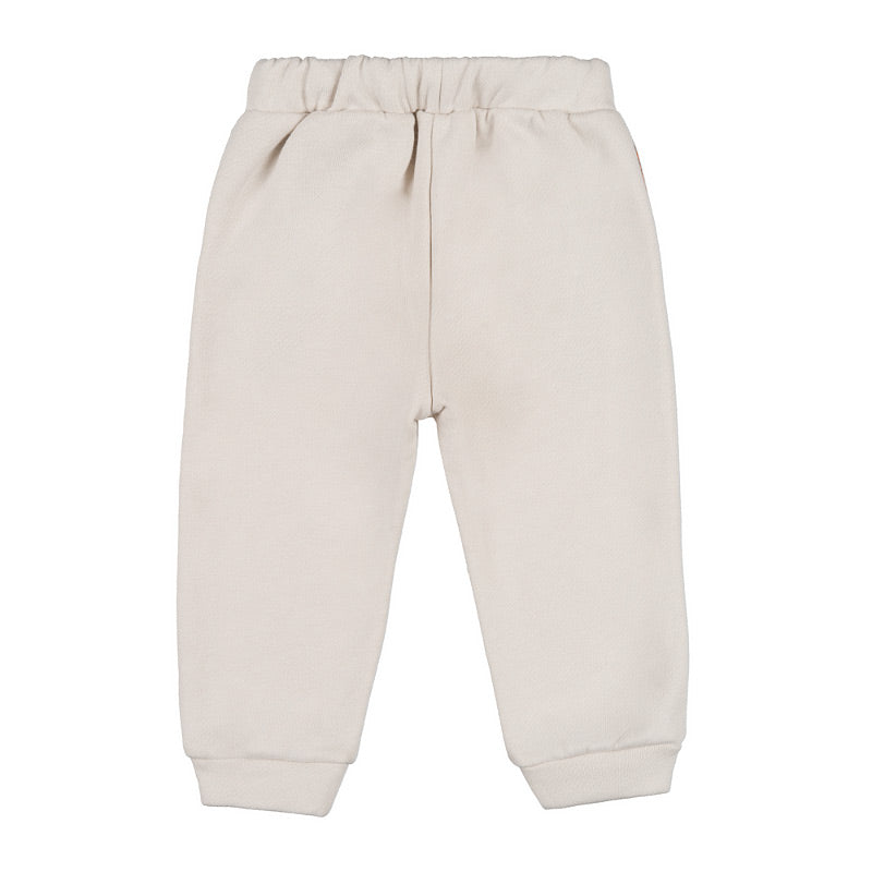 Acesti pantaloni crem din fleece imbina confortul cu stilul, fiind ideali pentru joaca si relaxare. Prevazuti cu buzunare laterale decorate cu insertie in carouri, se asorteaza perfect cu piesele din aceeasi colectie. Talie elastica si mansetele de la baza asigura o fixare sigura si comoda, astfel incat copilul sa se simta liber in fiecare miscare.