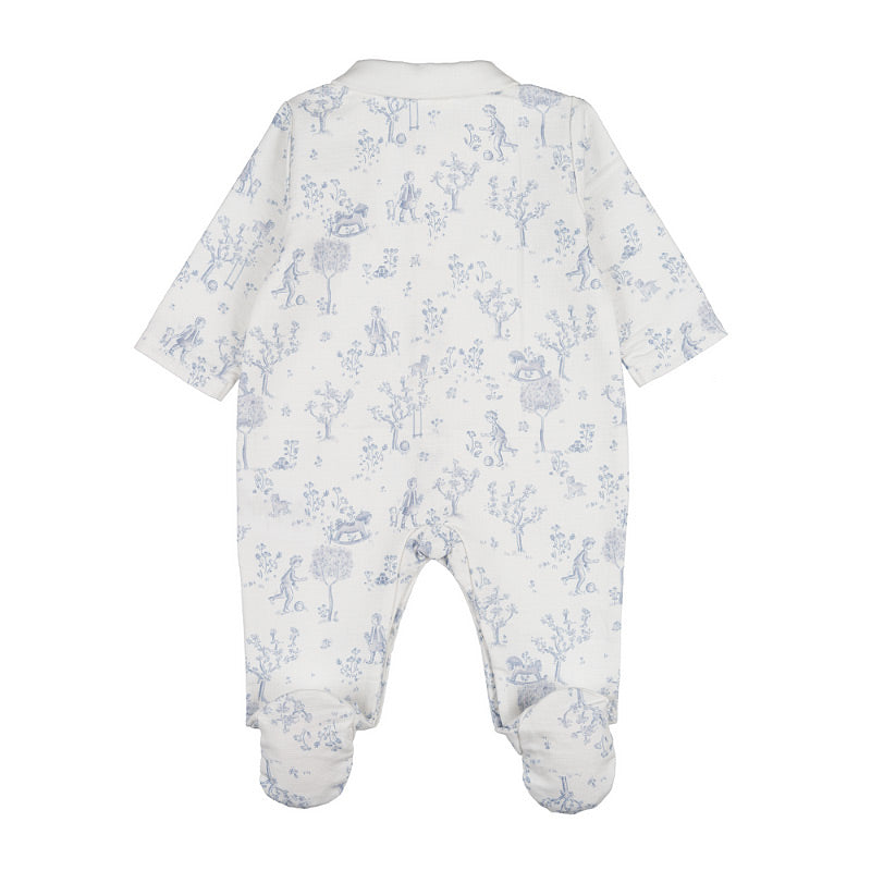 Aceasta salopeta alba pentru bebelusi este realizata din poplin moale din bumbac 100%, oferind confort si libertate de miscare. Este decorata cu un imprimeu delicat si are guler alb, adaugand un detaliu elegant. Inchiderea frontala cu nasturi asigura imbracarea facila, facand-o ideala pentru primele luni ale bebelusului.