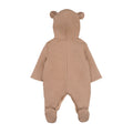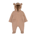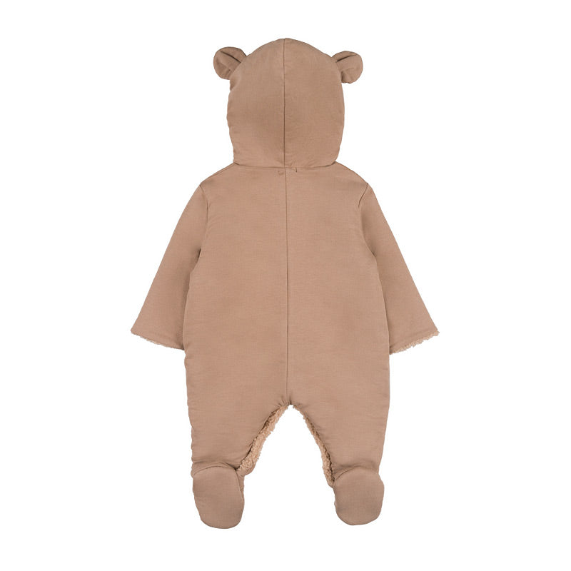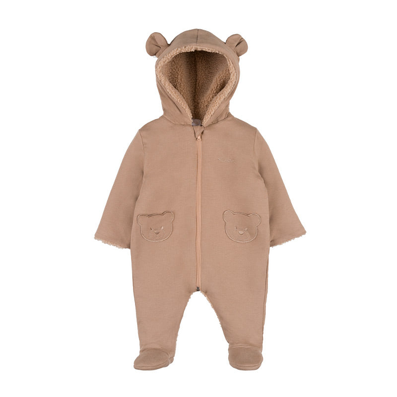 Aceasta salopeta captusita bej este perfecta pentru zilele reci, oferind bebelusului tau caldura si confort. Realizata din bumbac moale cu un plus de elastan, imbraca delicat pielea sensibila a celor mici. Buzunarele in forma de ursulet adauga un detaliu adorabil, iar gluga cu urechi completeaza designul jucaus. Inchiderea frontala cu fermoar face imbracarea si schimbarea rapida si usoara.