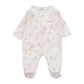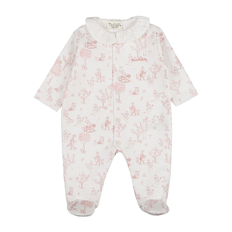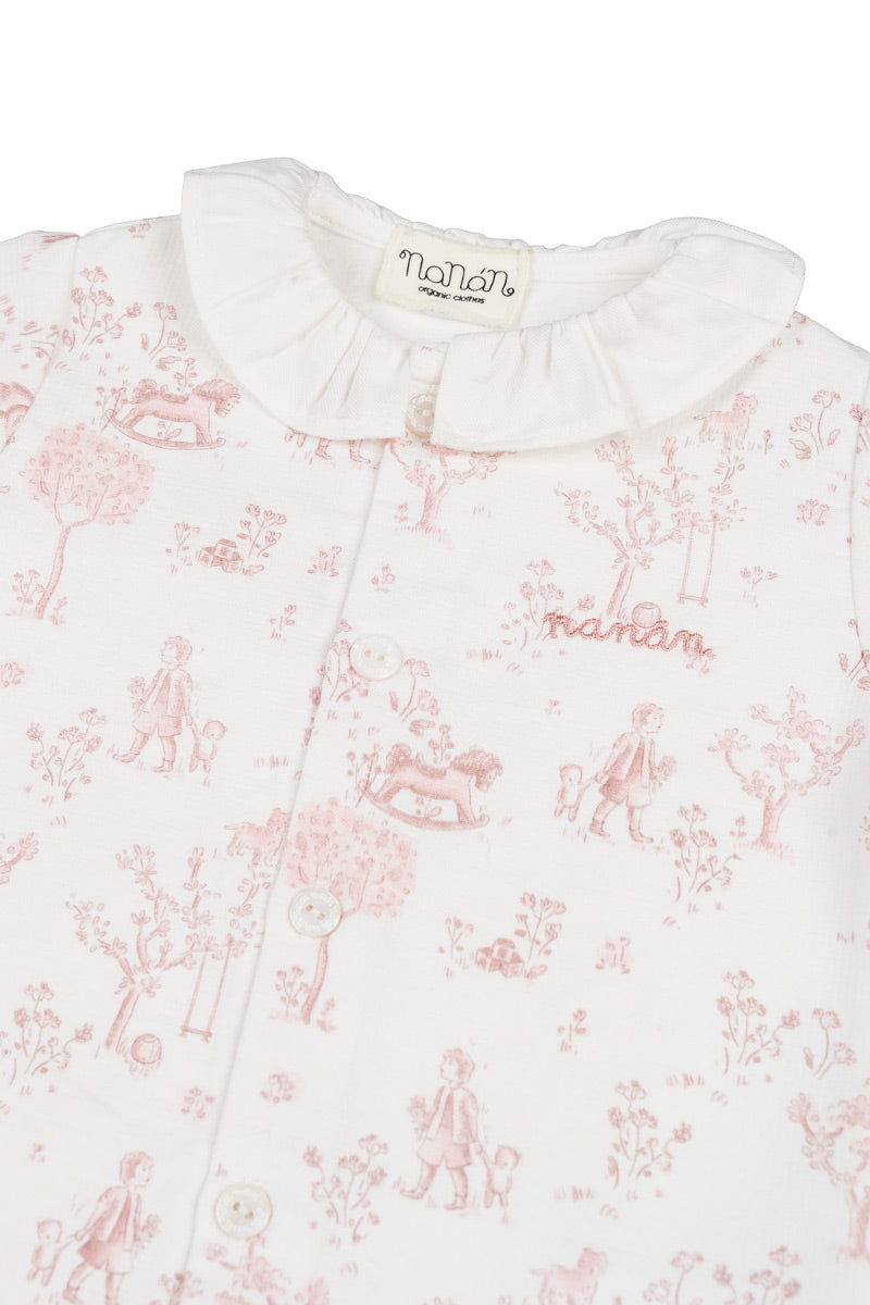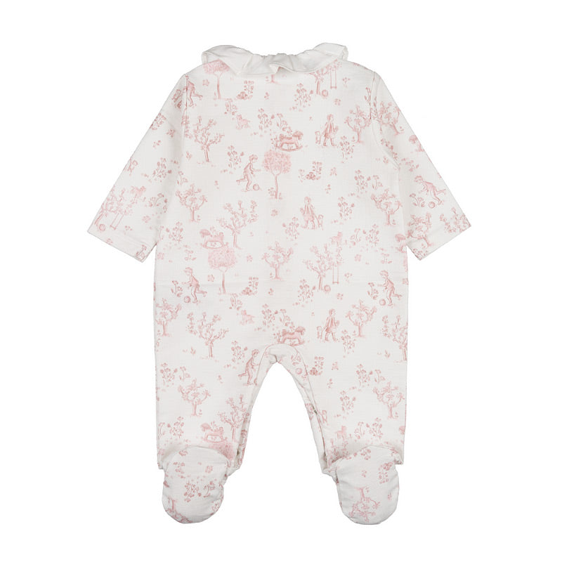 Aceasta salopeta roz pentru fete este realizata din bumbac 100%, fiind moale si delicata pentru pielea bebelusilor. Modelul este decorat cu imprimeu floral fin in nuante de roz si are un guler rotund clasic, care adauga un plus de eleganta romantica. Inchiderea frontala practica cu nasturi face imbracarea rapida si usoara, fiind ideala pentru primele luni de viata.